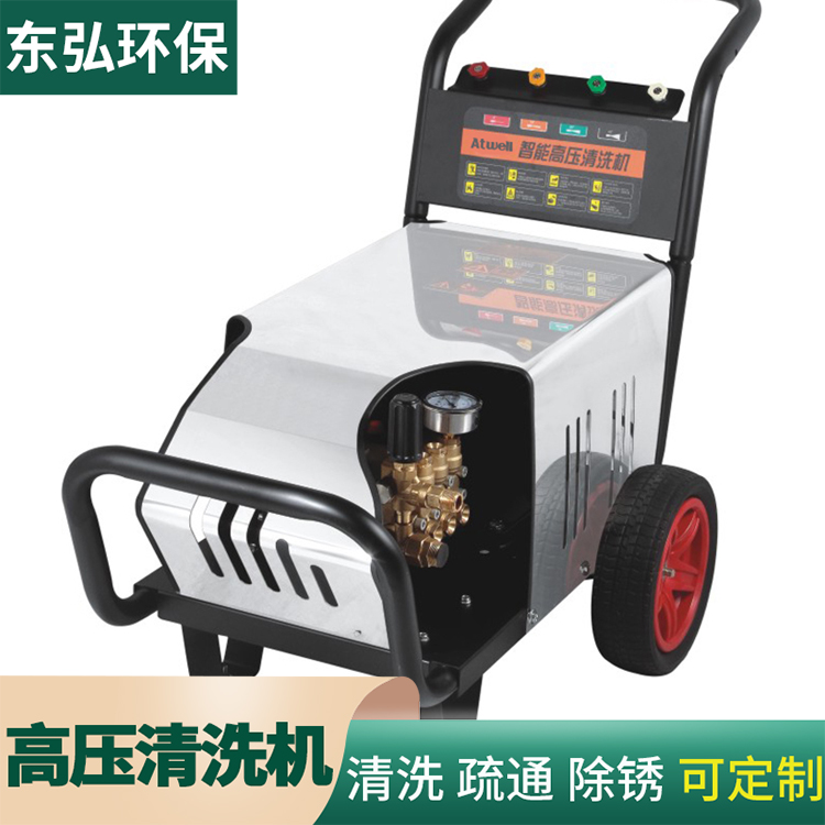 高壓清洗機,是通過動力裝置使高壓柱塞泵產(chǎn)生高壓水來沖洗物體表面的機器。它能將污垢剝離,沖走,達到清洗物體表面的目的。因為是使用高壓水柱清理污垢,所以高壓清洗也是世界公認科學、經(jīng)濟、環(huán)保的清潔方式之一。 高壓洗衣機是一種高壓水射流清洗設備,它加水加壓至足夠的壓力,并使用高壓水清洗污垢